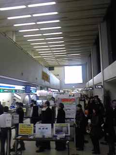 熊本空港は欠航が相次ぎ払い戻しのお客さんでごった返し。